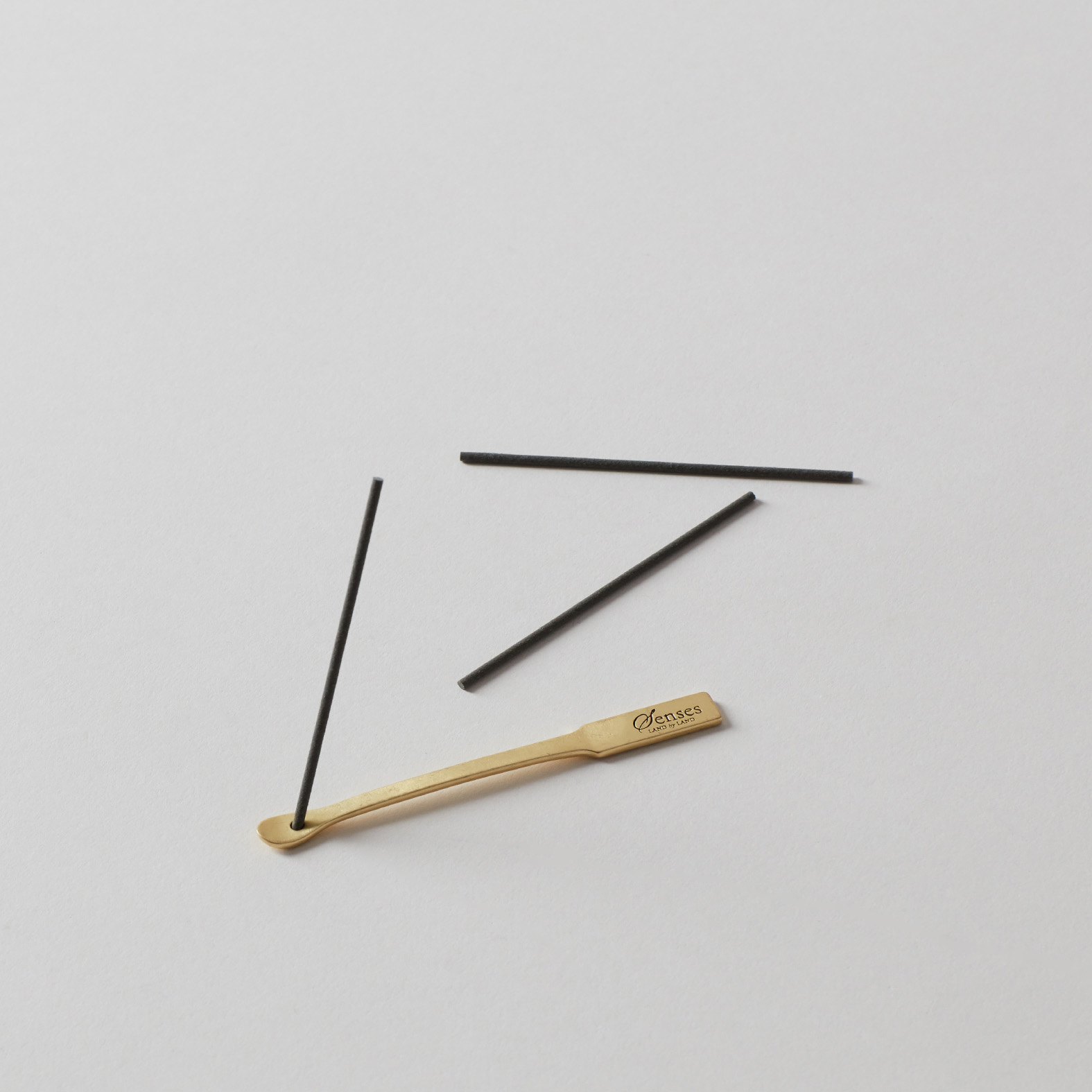 A single glass vial holding 50 32-degree incense sticks and a brass holder